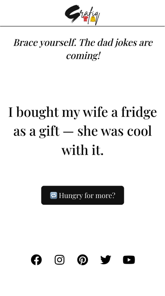 This is only a preview. When you scan the QR on your hoodie, T-shirt, or sweatshirt, you’ll unlock 100+ jokes from the theme you selected. If you prefer something personal — your own messages, social media link to connect with your QR — you can add it during checkout.